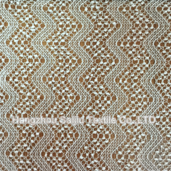 Item Number: HZQT-1069 Description:100% Polyester Lace Solid Dyed Fabric Finished Width:150CM MOQ: 1000MTRS Lead time: about 15-30days after got the approval. Colors can be produced according to buyer's requirements. Pls contact us for information regarding our sample policy.